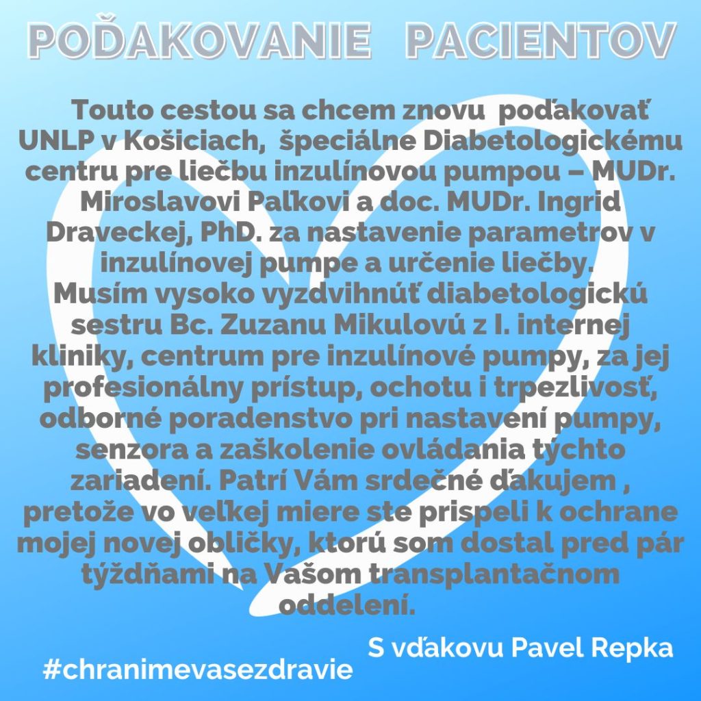 POĎAKOVANIE  pre  IV. internú kliniku, Rastislavova 43.